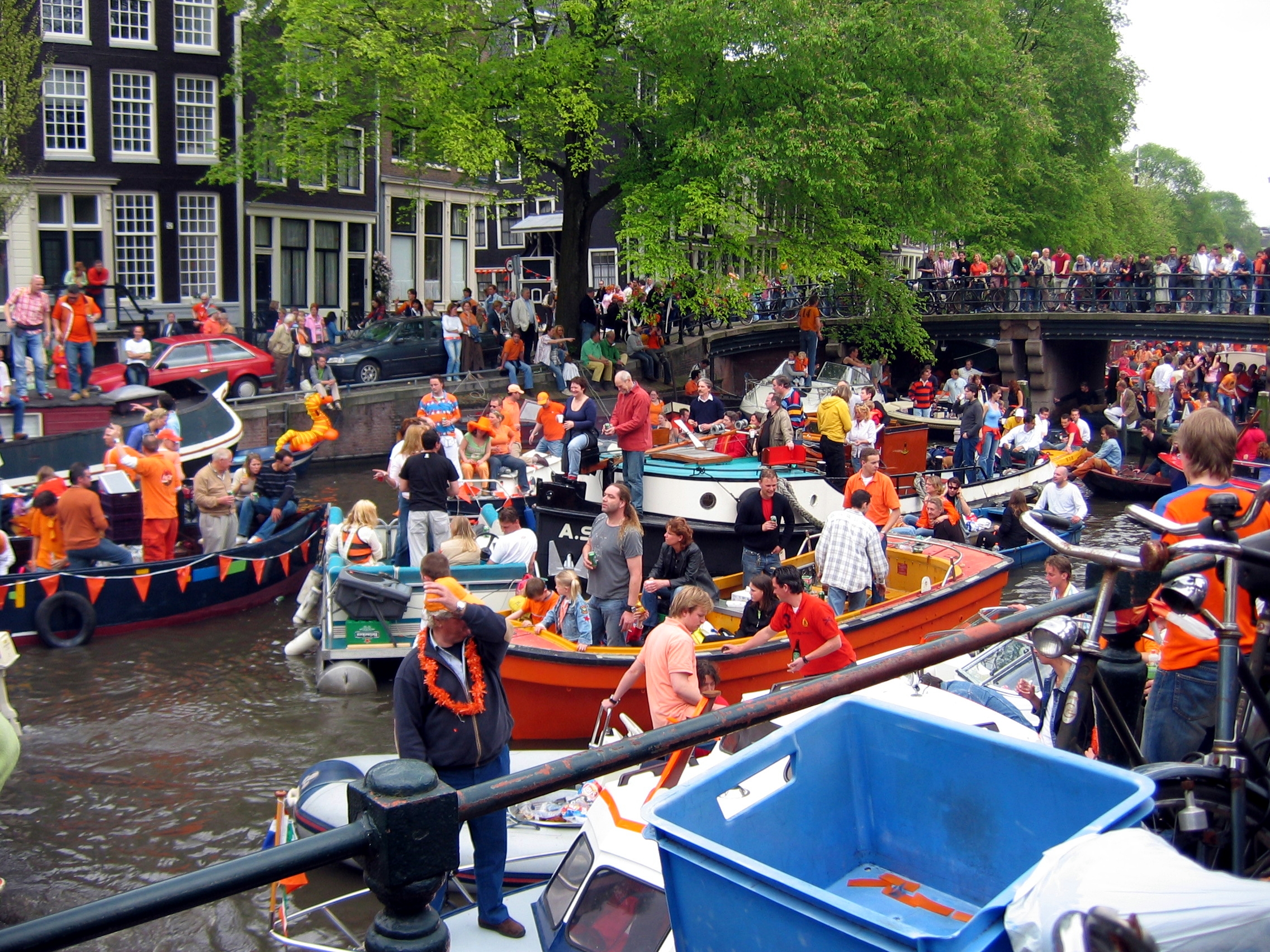 Queens Day (Queen Beatrix’s birthday) in 30th April 2005.  A mad day where many in Holland dress in orange and come to Amsterdam to drink and party!
