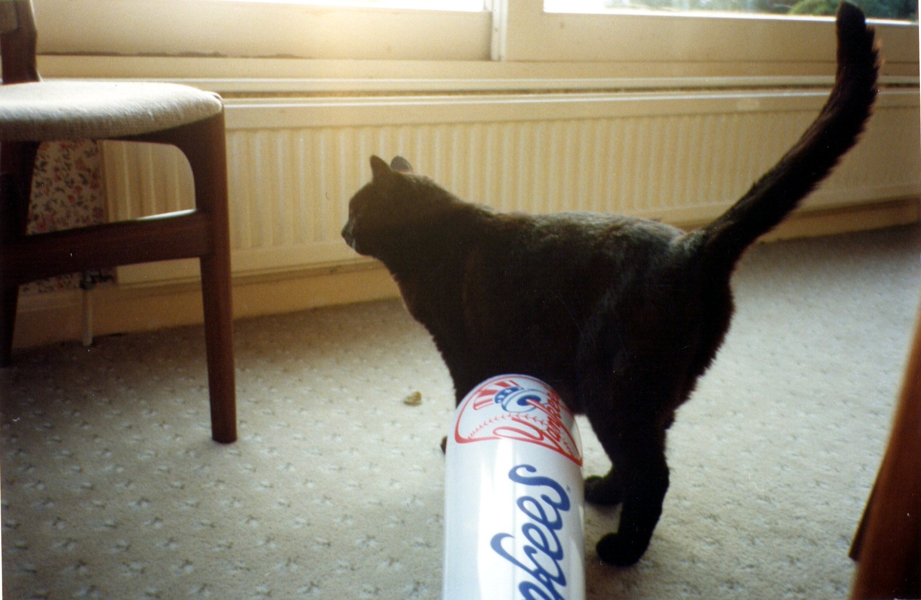 This is Barnaby, our previous cat.  He was a great cat who was also a great big cat! Someone appears to be poking him with a blow-up baseball bat here.....