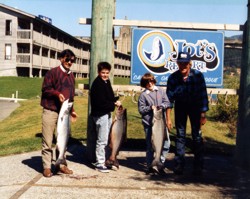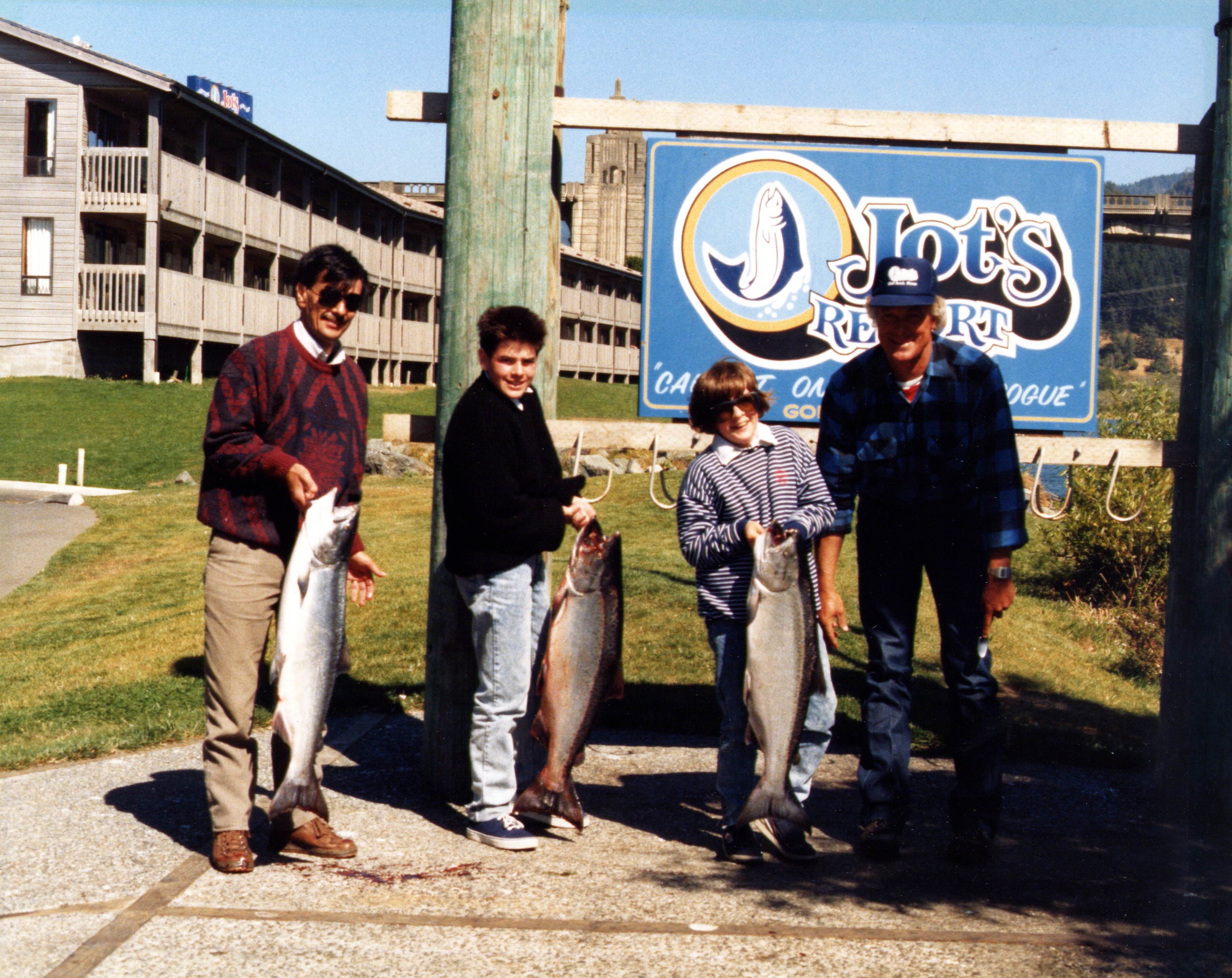 Dad, me, Liz and Skip at Jot’s Resort in the 1980s - with salmon!