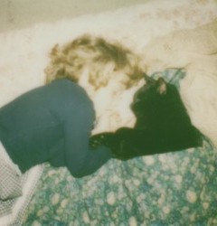 Liz asleep with Barnaby, her kindred spirit!